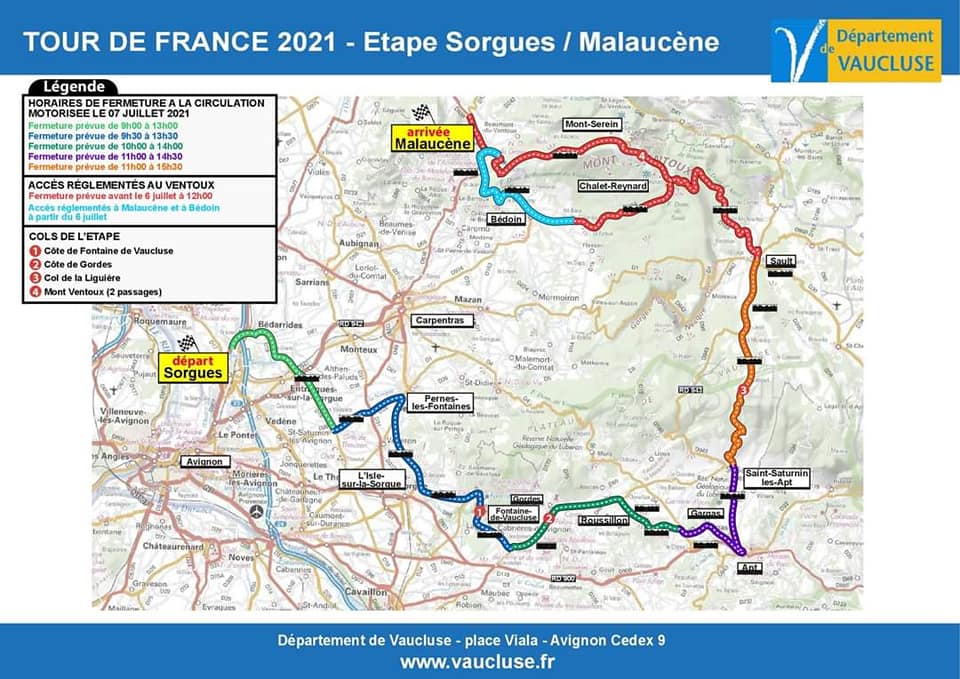 Voici les informations actualisées que nous disposons concernant le passage du tour de France en Vaucluse et plus particulièrement à Sault le mercredi 7 juillet :
